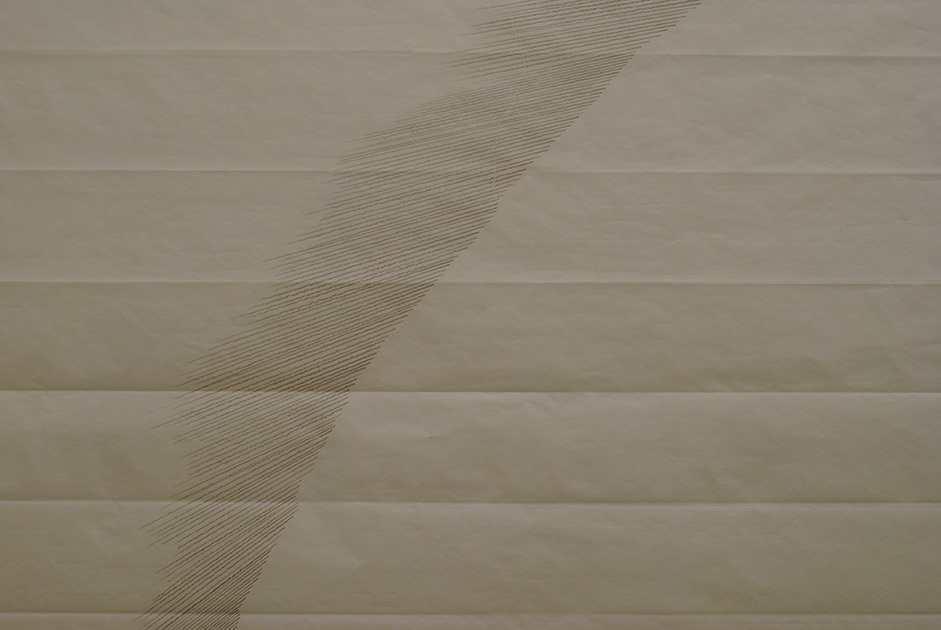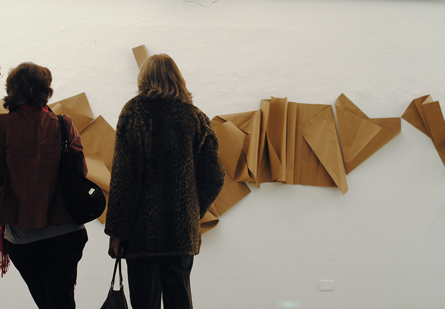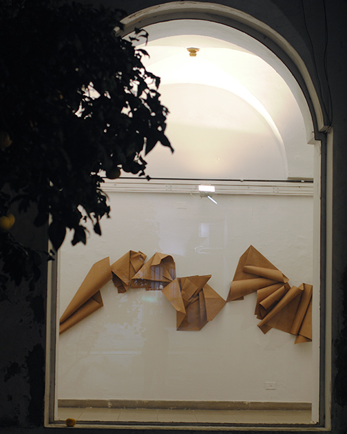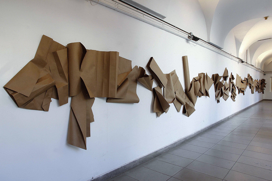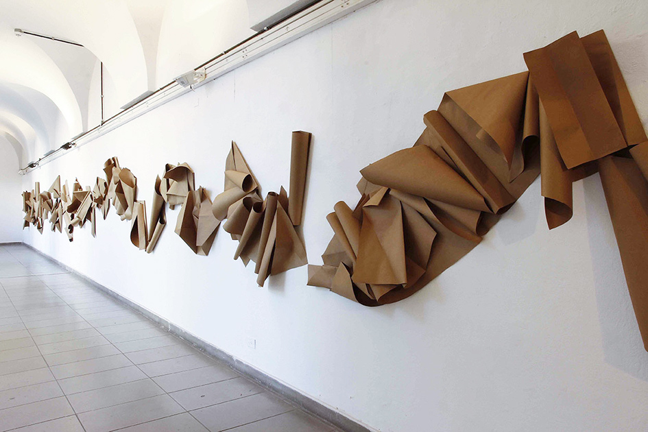 A diferencia del Barroco, que asumió el desafío de someter la placa de mármol y el plano de la pintura a una ondulación múltiple y sucesiva, Valeria Traversa elige hoy la hoja de papel madera. Una materia sobria que le permite el pliegue justo. La cualidad y la posibilidad de una forma precisa con posibilidades de mostrarse escuetamente compleja. En este sentido podría decirse que, al menos en su inmediata apariencia, los pliegues que componen su obra tienen la virtud de un espíritu austero y casi nada en común con la exuberancia barroca. Aún así, ambos se encuentran atravesados por una temporalidad que los lleva a envolver, desarrollar, doblar, desdoblar, replegar u ordenar concavidades y convexidades, quebrando ángulos y direcciones que no tienen comienzo ni fin. Esa modulación temporal implica un desarrollo de la forma y al mismo tiempo una variación de la materia: un derrotero sin límites, donde todo está por explorar.